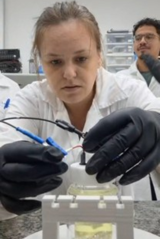 - O objetivo principal do meu trabalho é criar um biossensor capaz de detectar precocemente doenças como o câncer, contribuindo para diagnósticos mais rápidos e eficazes. A motivação do projeto é oferecer uma ferramenta que possa, no futuro, ser utilizada tanto na detecção quanto, potencialmente, no auxílio ao tratamento de doenças, por meio de uma abordagem menos invasiva e mais precisa. Como os eletrodos utilizados são produzidos por impressão 3D com filamentos compostos por carbono e polímeros não condutores, a primeira etapa do trabalho consiste no tratamento de superfície desses eletrodos. Em seguida realizamos uma série de caracterizações — químicas, físico-químicas, térmicas e mecânicas — com o objetivo de avaliar a eficácia dos tratamentos aplicados e definir o protocolo mais eficiente. Após essa etapa, funcionalizamos a superfície dos eletrodos com nanomateriais, buscando amplificar o sinal elétrico e melhorar os limites de detecção e quantificação dos dispositivos. Com os eletrodos otimizados, iniciamos a fase de detecção dos analitos biológicos de interesse. Ajustamos as concentrações, validamos os resultados e buscamos a máxima precisão analítica. Por fim, os dispositivos são testados com amostras reais para avaliar sua performance em condições mais próximas da aplicação clínica.