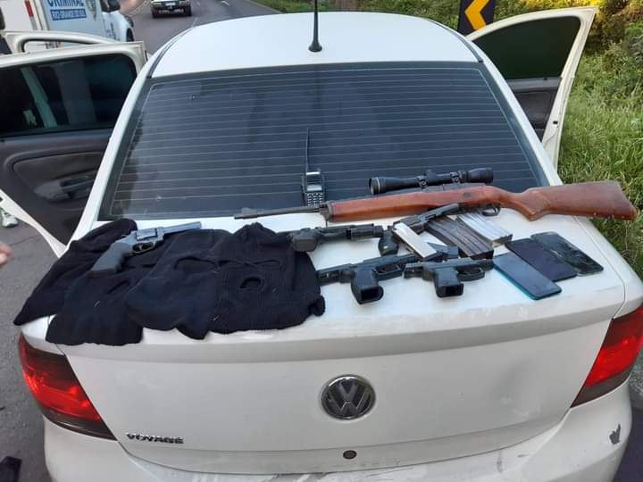 Com a quadrilha foram apreendidos rádios comunicadores, coletes balísticos, toucas ninjas, munições, um revólver, duas pistolas calibre 380, uma pistola 9 milímetros e um fuzil 556. Nenhum policial militar foi ferido durante a ação.