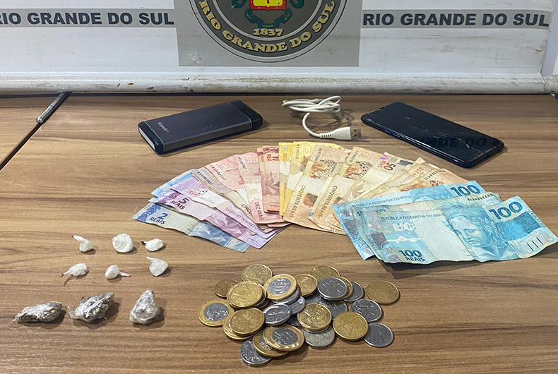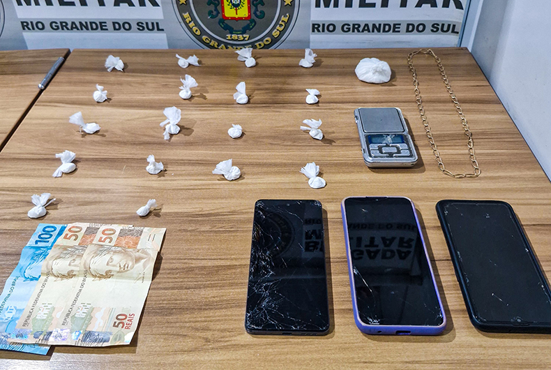 Já na madrugada deste sábado, ocorreram mais duas prisões. Em ações no Bairro Battisti, por volta das 2 horas, PMs visualizaram quando um homem saiu de um terreno baldio e largou nas mãos do motorista de uma Hyundai IX35 preta um objeto. A guarnição realizou a abordagem e apreendeu com a dupla porções de cocaína e R$ 777,25 em dinheiro.