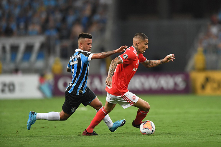 Matheus Henrique e Guerrero em campo, no Gre-Nal pela Libertadores, em março de 2020 | Foto: Ricardo Duarte