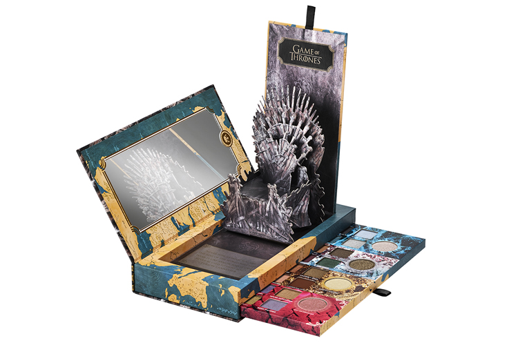 Prometa sua lealdade à casa Targaryen, Casa Lannister, ou casa Stark – ou até mesmo ao White Walkers URBAN DECAY| GAME OF THRONES Eyeshadow Palette, uma paleta 3D com um arsenal de 20 tons. Cada um representa a intensidade e diversidade dos poderosos jogadores de Westeros: Casa Targaryen (brilho de pedras preciosas), Casa Lannister (metal fosco e reflexo metálico), Casa Stark (mattes esfumados e brilhos neutros), e os White Walkers (brilhos frios e gelados). Use qualquer cor diretamente ou mude o visual com cada cor transformadora dos quatro tons holográficos. Preço sugerido ao consumidor: R$ 409.
