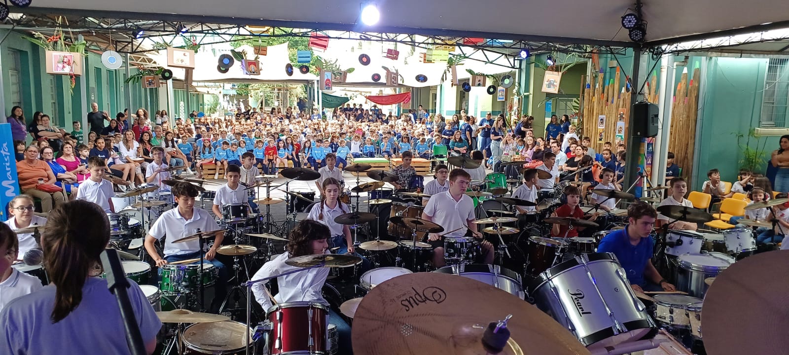 O Colégio Marista São Luís realiza mais uma edição do Arte por toda Parte. Neste ano, a temática é a (in)Visibilidade da Arte Negra, cuja proposta é oferecer aos estudantes experiências que retratam a representatividade e o protagonismo negro na cultura brasileira. Além do tradicional encontro de baterias, há atividades complementares de dança e vocal. Na noite de sexta-feira, o educandário abriu suas portas e os alunos puderam se apresentar aos pais, familiares e toda a comunidade escolar.