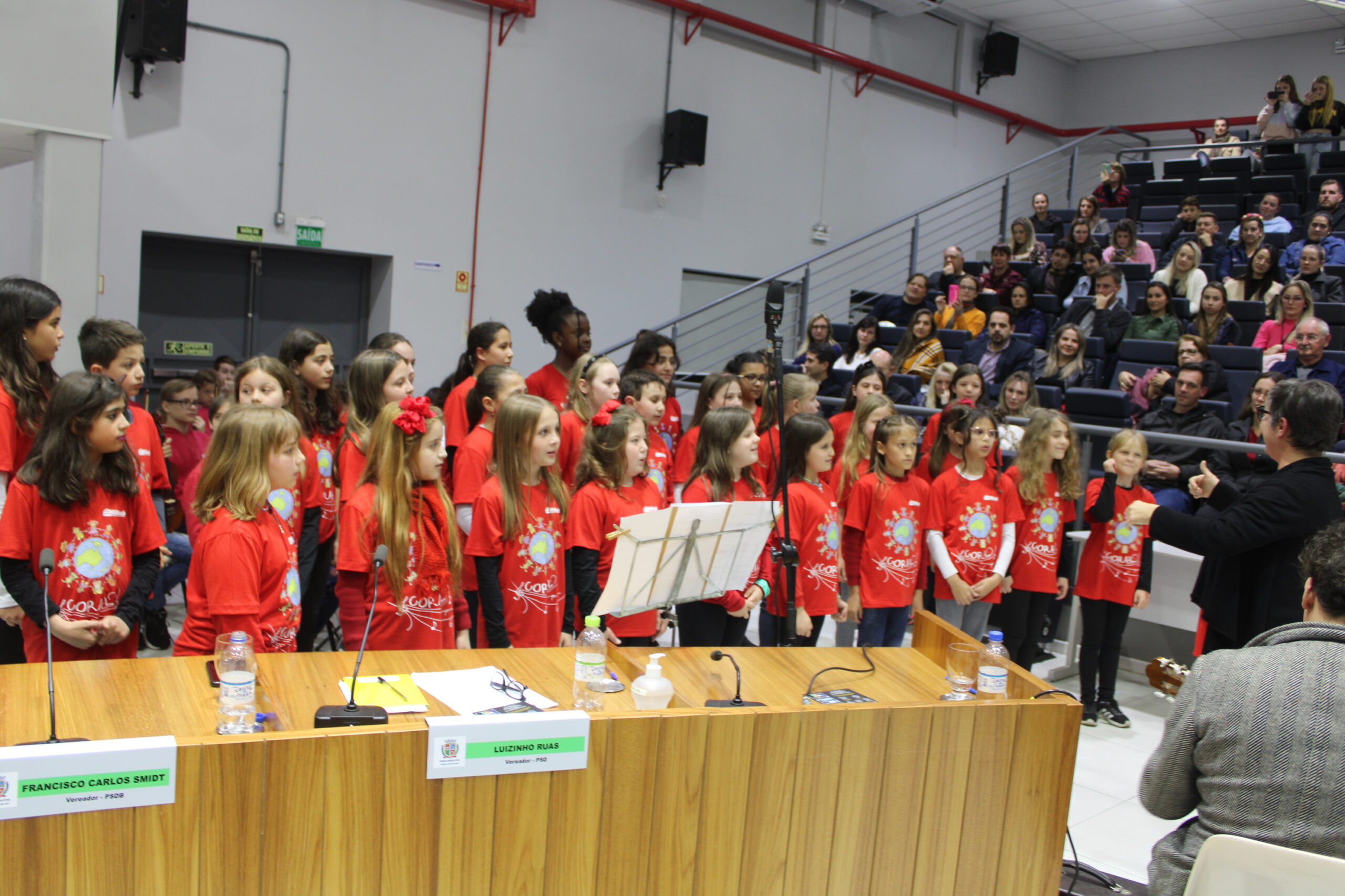 Numa proposição do vereador Francisco Carlos Smidt (PSDB), a Câmara de Vereadores de Santa Cruz do Sul realizou sessão solene em homenagem aos 152 anos do Colégio Mauá. A sessão teve apresentação do Coral Infantil do Colégio Mauá e do Conjunto Instrumental.