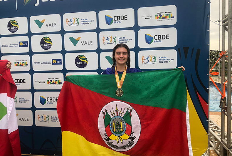 Quem também trouxe medalhas para Santa Cruz do Sul foi a jovem Renata Moreira. Contabilizando conquistas na natação, ela volta pra casa com mais quatro medalhas depois da participação no JEBS, sendo três de bronze no individual e uma de prata no revezamento coletivo