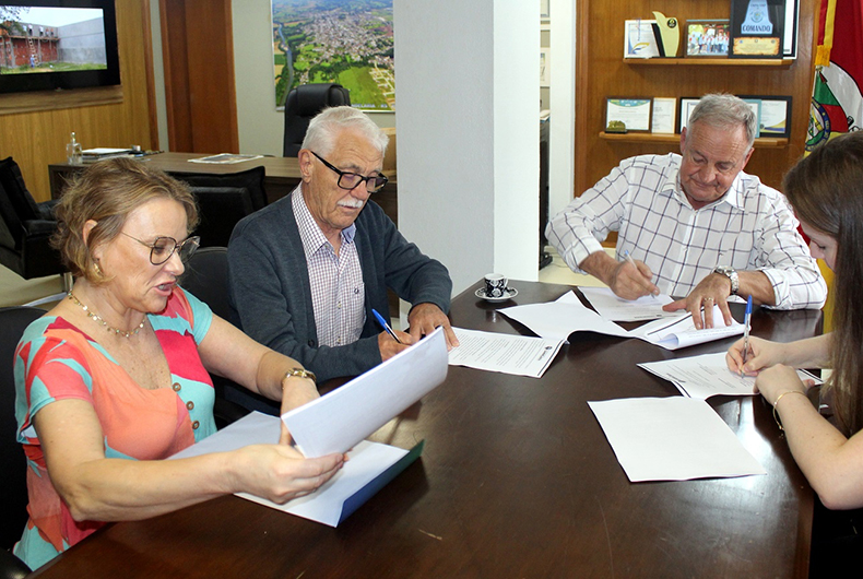 A Prefeitura de Candelária celebrou, na quinta-feira (foto), um acordo de cooperação com a Ação Social Diocesana de Santa Cruz do Sul (Asdisc) para ampliar a segurança no Colégio Nossa Senhora Medianeira. O trabalho consistirá em atuação preventiva, possibilitando a identificação de sinais antes de ataques. Também haverá ação repressiva para reduzir o impacto da violência, a partir do compartilhamento de imagens do sistema de videomonitoramento do colégio e de aplicativo para celular com acionamento em caso de violência.