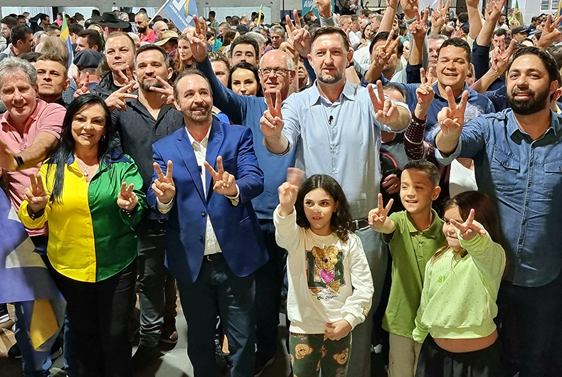 As últimas convenções para definição dos candidatos às eleições em Santa Cruz do Sul foram realizadas nesta noite de segunda-feira, 5. PL e MDB reuniram seus filiados e simpatizantes no Pavilhão da Comunidade Espírito Santo, onde foram anunciados os nomes de Sérgio Moraes para prefeito e Alex Knak vice. A noite foi de inclusão de mais partidos entre os apoiadores. Podemos, Avante e Solidariedade uniram-se ao grupo, que já havia recebido o apoio do PDT, que realizou convenção na manhã de sábado.