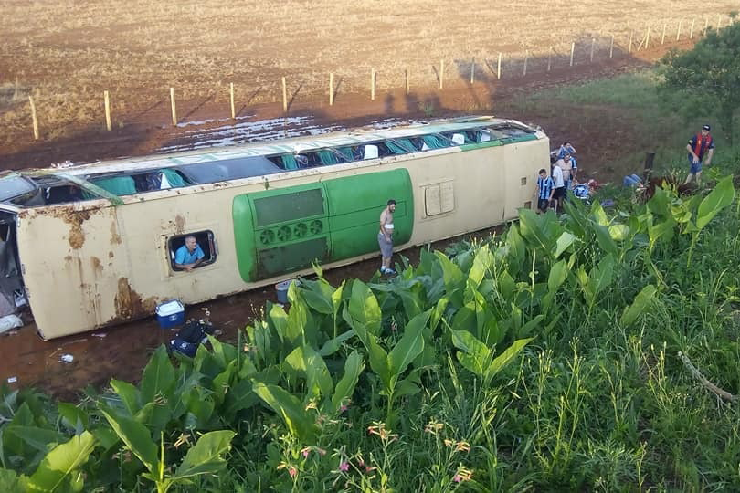 Um acidente envolvendo um ônibus com torcedores do Grêmio e uma van deixou uma pessoa morta na manhã deste domingo, 3. A colisão ocorreu no quilômetro 209 da BR-386, em Tio Hugo. O ônibus caiu em um barranco.