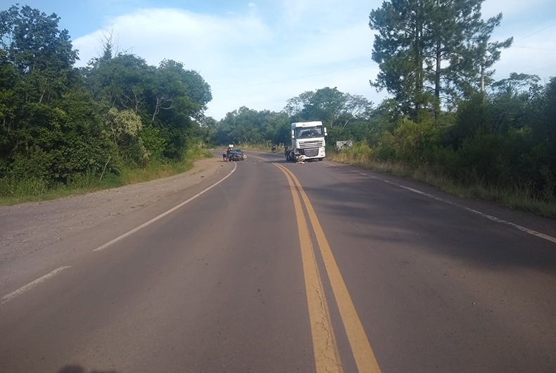 Segundo informações do Comando Rodoviário da Brigada Militar, um carro e um caminhão colidiram. A passageira do carro foi socorrida com lesões leves. Outros detalhes não foram divulgados.