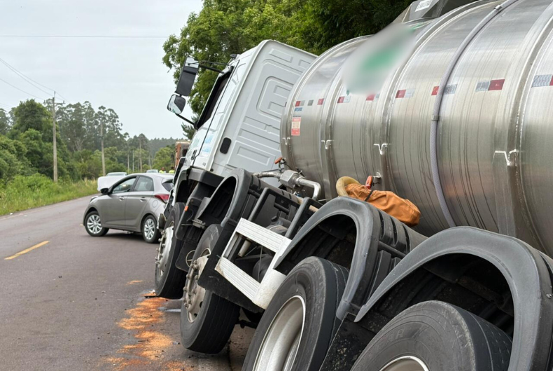 Com o impacto, os dois caminhões teriam saído da pista, enquanto o HB20 colidiu frontalmente contra o caminhão que levava a carga química e ficou danificado. Equipes do Corpo de Bombeiros Militar e do Serviço de Atendimento Móvel de Urgência (Samu) fizeram o primeiro atendimento, enquanto o Comando Rodoviário da Brigada Militar registrou a ocorrência. A Guarda Municipal realizou o controle do trânsito, que chegou a ficar a meia pista, mas já está sendo liberado.