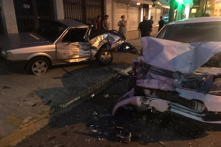 Um VW Gol, conduzido por um homem de 25 anos, bateu em três caminhonetes, que estariam estacionadas, uma VW Saveiro, uma Renault Duster e um Hyundai Tucson.