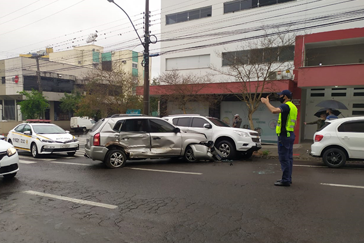 Uma colisão envolvendo quatro veículos foi registrada na manhã desta segunda-feira, 26, no Centro, em Santa Cruz do Sul. O acidente ocorreu por volta das 8 horas, na esquina das ruas Tenente Coronel Brito e Tiradentes. Uma mulher ficou levemente ferida e precisou de atendimento médico.