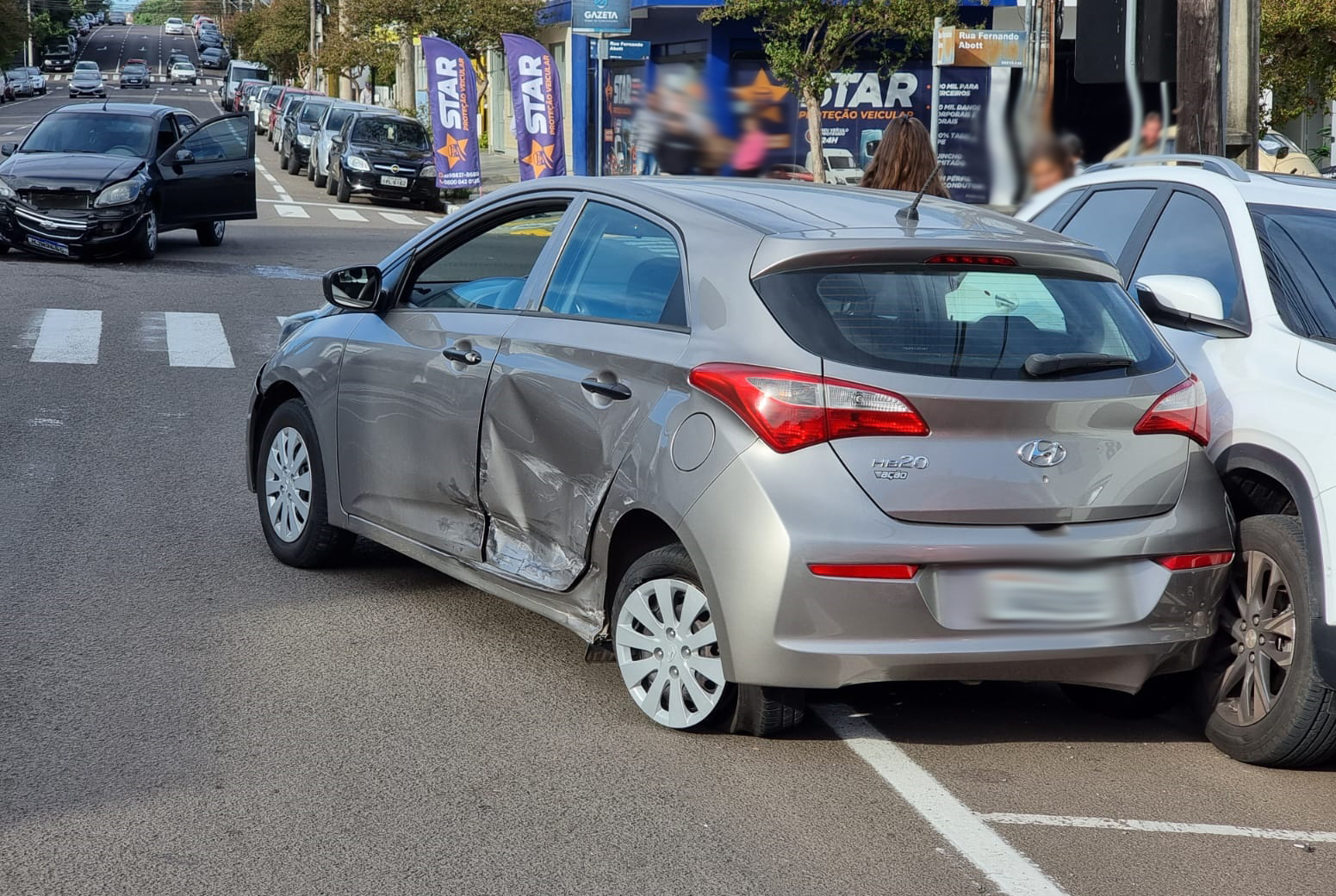Um acidente envolvendo três veículos deixou o trânsito lento na manhã desta sexta-feira, 12, no Centro de Santa Cruz do Sul. A colisão, registrada por volta das 08h45 na Rua Venâncio Aires, esquina com a Rua Fernando Abott, envolveu um Chevrolet Prisma, um Hyundai HB20 e uma Chevrolet Tracker.