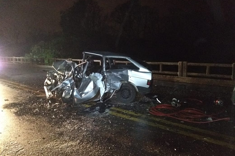 Um Volkswagen Gol, modelo antigo, e uma caminhonete Volkswagen Amarok com placas de Santa Cruz do Sul colidiram sobre a ponte do Arroio Castelhano. O condutor do Gol ficou preso às ferragens e morreu no local. Ele foi identificado como Jackson Adriano Machado, de 31 anos.