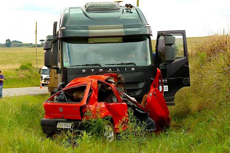 A colisão frontal entre um Volkswagen Gol vermelho com placas de Nonoai e uma carreta com placas de Coronel Freitas-SC aconteceu na manhã desta segunda-feira, 8. Os três ocupantes do carro morreram e o motorista do caminhão não sofreu ferimentos.