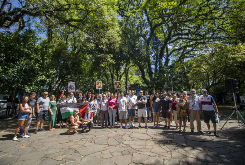 Criado em outubro de 2023, tão logo iniciaram os bombardeios indiscriminados de Israel contra os palestinos, na Faixa de Gaza, o Comitê pela Paz na Palestina, contra o Apartheid e o Genocídio, de Santa Cruz do Sul, tem atuado de forma constante para conscientizar a população sobre o que tem ocorrido no Oriente Médio. Na manhã de sábado, 13, integrantes do comitê local participaram de um chamado global que pede o cessar-fogo entre Israel e o grupo Hamas e realizaram um ato na Praça Getúlio Vargas. A atividade reuniu membros da comunidade palestina que vivem no município, bem como simpatizantes e dirigentes de organizações sociais e políticas.