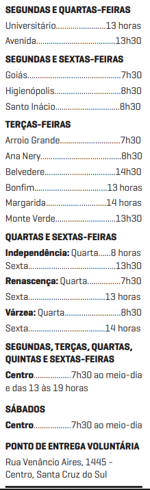 O serviço direto atende 15 bairros de Santa Cruz do Sul. Além disso, a instituição recebe resíduos provenientes de outras 21 localidades, recolhidos por iniciativas privadas, ampliando o alcance do sistema de reciclagem na região.