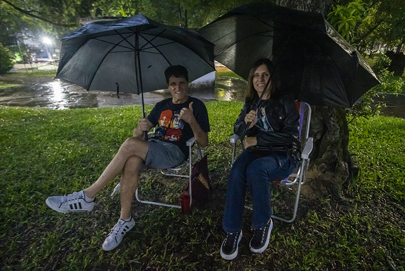 O casal Adriana e Valmir Moraes estava abrigado embaixo de árvores, com seus guarda-chuvas e vestindo camisetas estampadas pela banda. Os dois disseram adorar o trabalho dos Beatles. “Sempre acompanhamos as músicas deles. Fizeram parte da nossa vida, desde a infância”, disse Valmir.