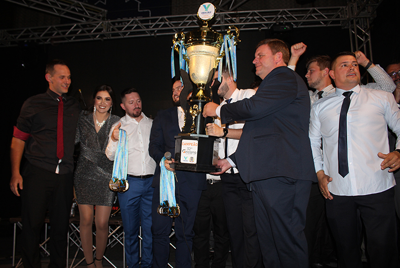 Equipe recebeu troféu das mãos do prefeito na madrugada de ontem, durante baile em comemoração aos 63 anos de Vera Cruz | Foto: Ramiro Brites