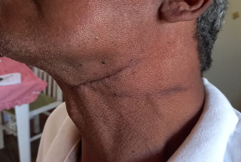 Homem foi atingido no pescoço por um golpe de adaga desferido pelo vizinho