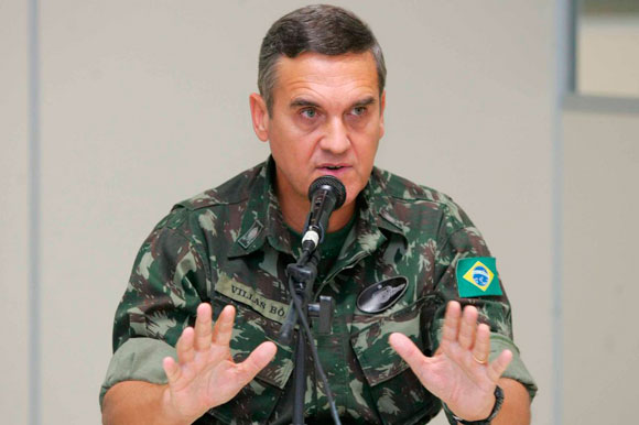 O comandante do Exército brasileiro, general Eduardo Villas Boas, afirmou nessa terça-feira, 23, que seria um retrocesso se houvesse uma intervenção militar no governo federal. Destacou, porém, que o apoio popular a essa ideia demonstra que há problemas no Brasil. Em palestra em seminário no Rio, o general disse que 43% da população apoiaria uma ação desse tipo por parte dos militares, segundo pesquisas de opinião. Não explicou, porém, a quais sondagens se referia.