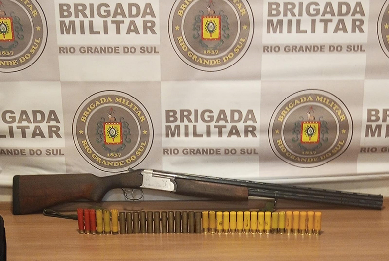 Os policiais realizaram a abordagem a um veículo Fiat/Strada, com placas de Passa Sete, quando flagraram no banco do motorista uma capa camuflada para transporte de armas. Posterior, localizaram uma espingarda calibre 20 e 35 munições intactas.