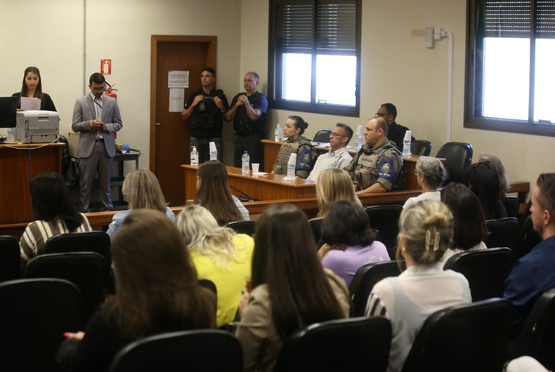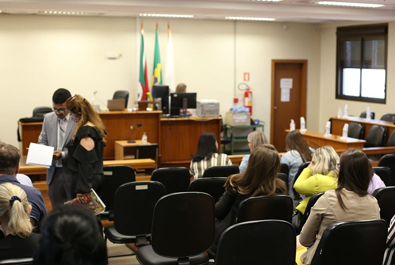 O júri popular de Jair Menezes da Rosa, de 62 anos, acusado de ter assassinado Francine Rocha Ribeiro, de 24, iniciou na manhã desta sexta-feira, 18, no Fórum de Santa Cruz do Sul. A sessão, presidida pela juíza Márcia Inês Doebber Wrasse, teve início com o sorteio dos sete jurados que compõem o Conselho de Sentença. Após isso, ocorrem as oitivas das três testemunhas arroladas no processo: delegado Luciano Menezes, a delegada Lisandra de Castro de Carvalho e a irmã gêmea de Francine, Franciele Rocha Ribeiro.