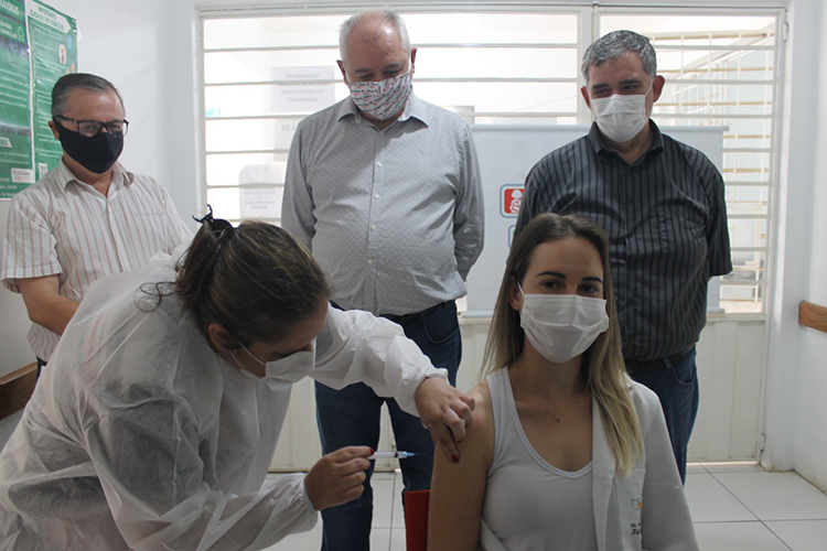 A enfermeira Roberta Mota Holzschuh foi a responsável por realizar a aplicação da primeira dose. Conforme o coordenador de saúde de Sobradinho, Nilo Wietzke, o município recebeu 214 doses da vacina contra a Covid-19 e serão vacinados prioritariamente profissionais da saúde dos hospitais e da Secretaria Municipal da Saúde.
