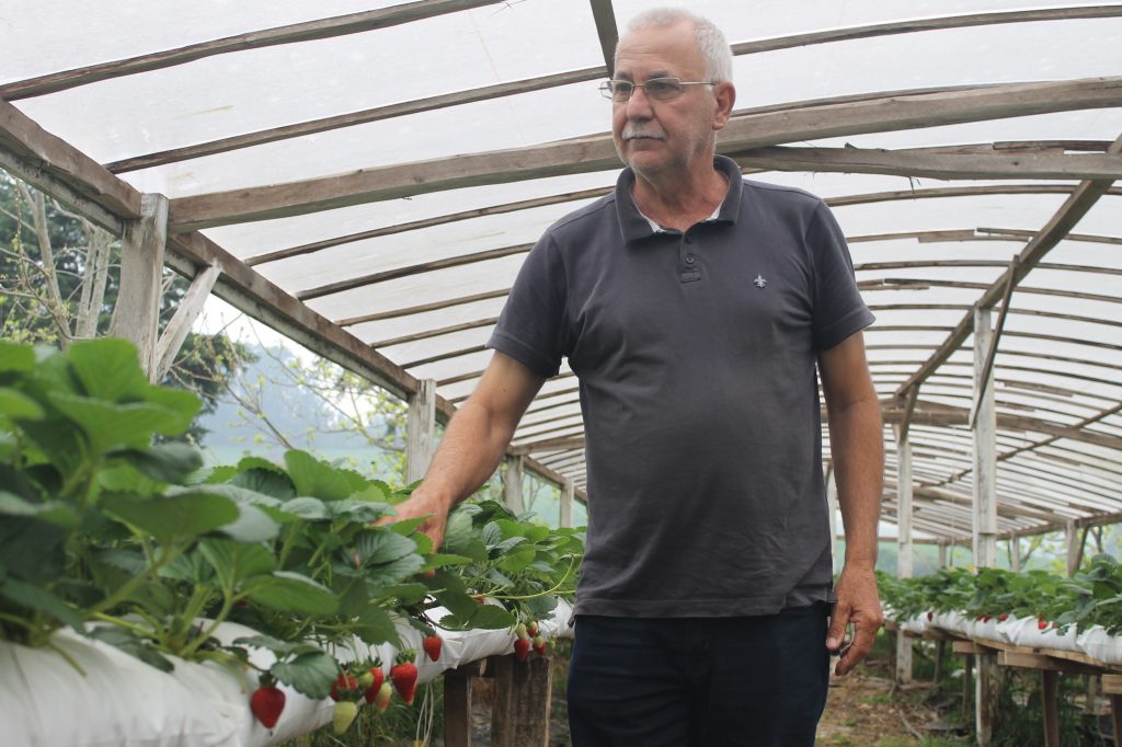 Além do plantio direto no solo, o município também conta com o plantio suspenso, o qual é realizado na propriedade do produtor Natalino Wiedenhoft, de 62 anos, morador da localidade de Campo da Aviação. Segundo ele, a família começou a trabalhar na cultura há aproximadamente seis anos. “Antes eu plantava um pouco no chão, então comecei fazendo mudas. Vinha aquelas matrizes de Minas, então eu plantava, ela se esparramava e eu vendia a muda pronta”. O produtor, que planta morangos da variedade Albion, conta como é feito o processo na propriedade. “A muda é importada, chegando aqui geralmente no mês de junho. Como temos duas estufas, trocamos em um ano as mudas de uma estufa e no ano seguinte da outra, produzindo, assim, durante o ano inteiro”. Wiedenhoft destaca também que o forte da muda para a qual começaram a colheita em setembro é o mês de outubro, se estendendo até maio do ano seguinte.