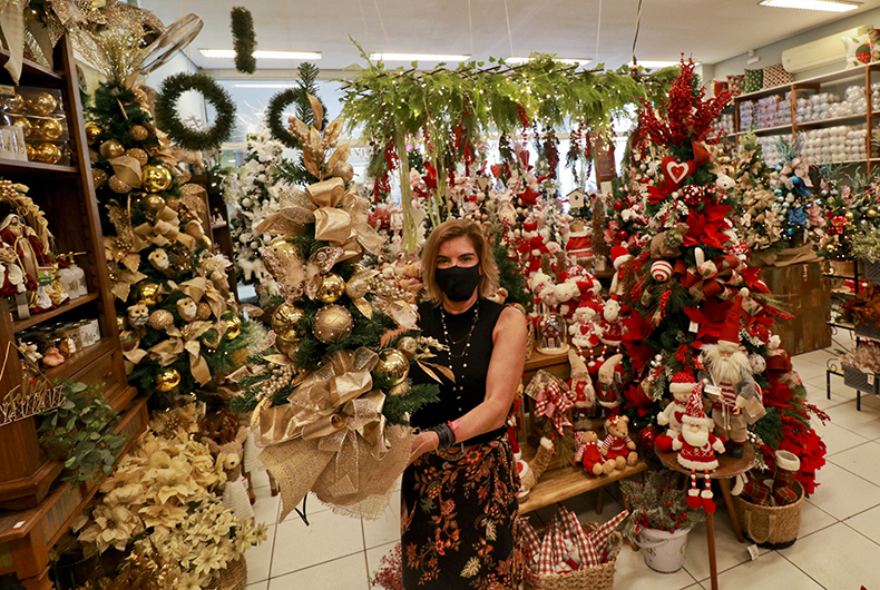 São tantas as opções que é difícil escolher quais itens levar para a decoração natalina. Na Oba Oba, por exemplo, há um cômodo inteiro dedicado a expor especialmente produtos para decorar a casa nesta época do ano. A proprietária da loja, Marilene Aguiar Pacce, acredita que, na comparação com 2020, as vendas devem apresentar aumento. “As pessoas estavam mais isoladas, não podiam fazer eventos com a família. Então, neste ano acho que se terá um incremento justamente porque as pessoas poderão se reunir novamente. Acredito que vão investir mais em decoração”, considera.