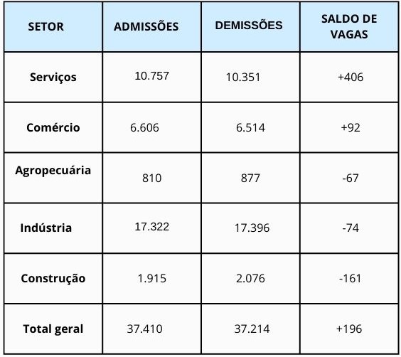 Fonte: Observatório Econômico, com dados do Cadastro Geral de Empregados e Desempregados do Brasil (Caged)