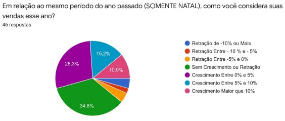 Dos comerciantes que consideram o Natal uma data que impacta no seu negócio, 54% consideram que houve crescimento. “O impacto positivo foi sentido pelo comércio, em especial, com a injeção do 13º salário aos trabalhadores”, justifica o presidente da CDL, Márcio Farias Martins.