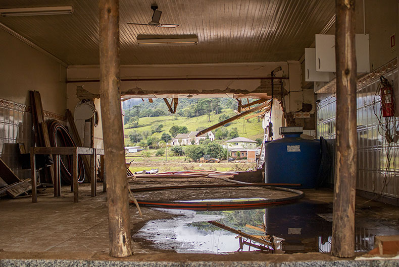 No interior da construção, o nível da água chegou a 2,30 metros, levando os produtos das lojas. “Levou o que podia levar e destruiu o que podia”, afirmou a empresária Talita Wagner, de 29 anos. A mudança para o novo prédio foi realizada no ano passado e era um antigo sonho da família. Anteriormente, as lojas de material de construção e agropecuária, que existe há 19 anos, e a de bazar, que completa sete anos em 2024, ficavam em endereços separados. “Foi muito doloroso ver a destruição depois de todos esses anos de trabalho e dedicação. Agora vamos ter que encontrar forças para recomeçar”, lamentou.