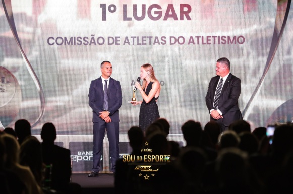 Jaqueline Beatriz Weber, atleta de 29 anos do Praia Clube/Miller/CDA/Fila e vice-presidente da Comissão de Atletas da Confederação Brasileira de Atletismo (CBAt), esteve ao lado de seu colega Cleiton Cezário, no 9º Prêmio Sou do Esporte, uma das mais relevantes cerimônias esportivas anuais do Brasil, organizada pelo Instituto Sou do Esporte, Band Sports e Foco Radical.