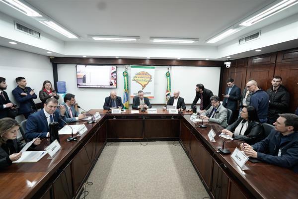 Logo após o encerramento da reunião ordinária, por solicitação do deputado Valdeci Oliveira (PT), foi realizada a reunião do comitê de acompanhamento das obras da RSC-287, que reuniu lideranças regionais, assim como os deputados Airton Lima (PODE), Kelly Moraes (PL), Tiago Simon (MDB), Paparico Bacchi (PL), a empresa Sacyr e a Agergs, além do secretário de Parcerias e Concessões do Governo do Rio Grande do Sul, Pedro Maciel Capeluppi.