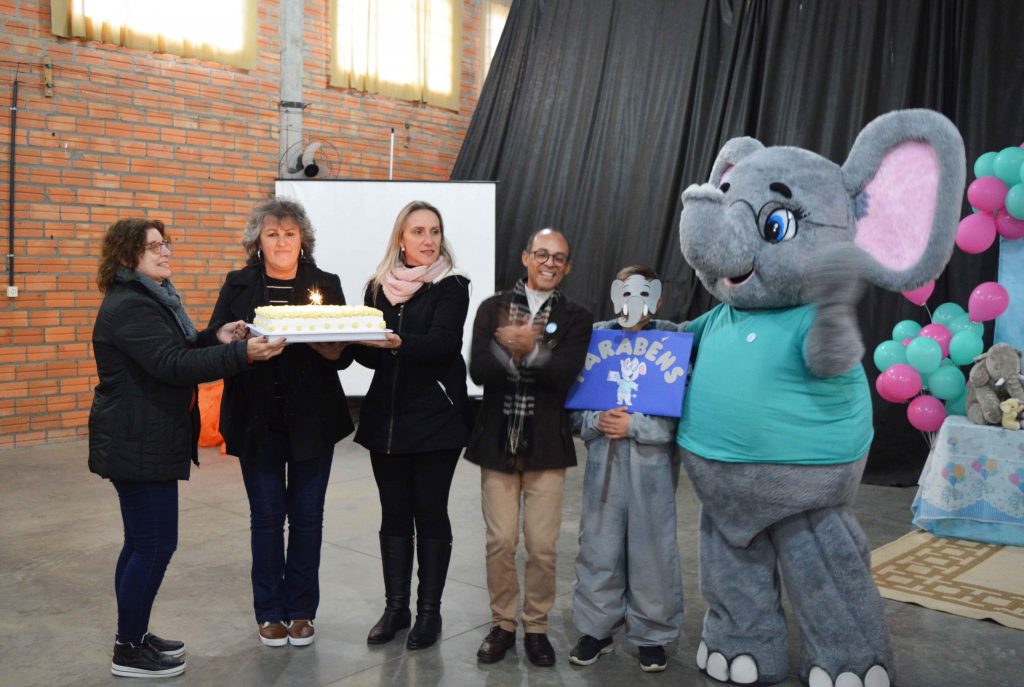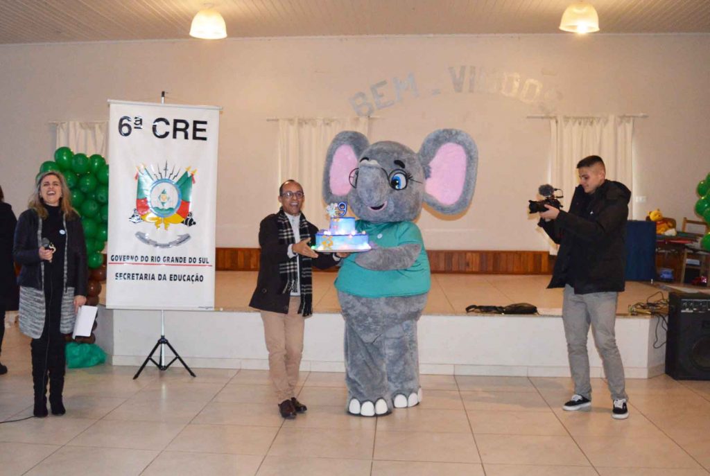 Um almoço especial foi servido à comitiva, a qual foi recepcionada na EEEM Cristo Rei, onde também foi preparado um bolo e acesas velas para celebrar os 9 anos da plataforma Elefante Letrado. “Esta plataforma é uma ferramenta facilitadora da aprendizagem e mostrou-se ainda mais importante em razão das aulas remotas, do distanciamento, para que os alunos pudessem fazer suas leituras e atividades de interpretação, sendo capaz de despertar sonhos e fazê-los voar através das histórias. Os alunos estão bastante motivados e se mostraram empolgados com esta visita do Sr. Elefante, preparando uma homenagem”, ressaltou a diretora Elisabet de Souza da Cas, enfatizando que esta também é uma forma de levar o universo literário para as famílias dos estudantes.