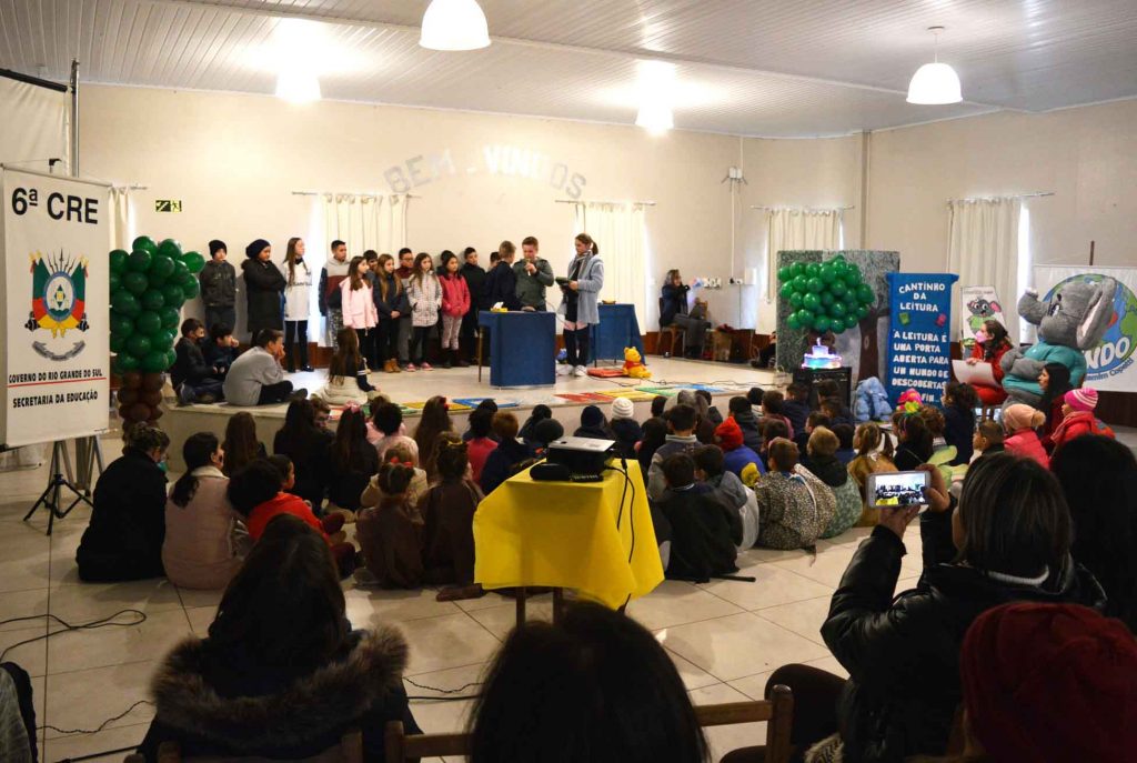 Os estudantes aguardavam ansiosos a chegada do mascote Sr. Elefante. As escolas realizaram apresentações artísticas resgatando histórias e personagens dos livros disponibilizados na plataforma. Em Passa Sete grupos de alunos do 3º ao 5º ano fizeram apresentações, e em Sobradinho cada escola apresentou-se com grupos de alunos do 1º ao 5º ano. Mais de 300 estudantes, professores e gestores participaram da atividade no Salão Paroquial.