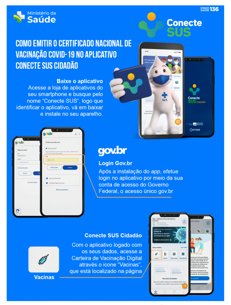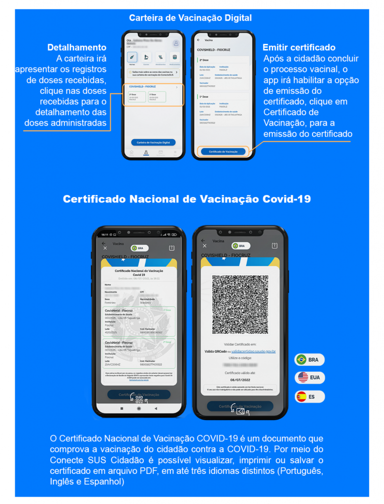 O Conecte SUS Cidadão é a porta de entrada digital às informações de saúde, permitindo que, por meio de um dispositivo mobile, seja possível visualizar histórico clínico, vacinas aplicadas, exames laboratoriais de Covid-19, internações e medicamentos utilizados. Além disso, é através desse aplicativo que se tem acesso à Carteira de Vacinação Digital e ao Certificado Nacional de Vacinação Covid-19.