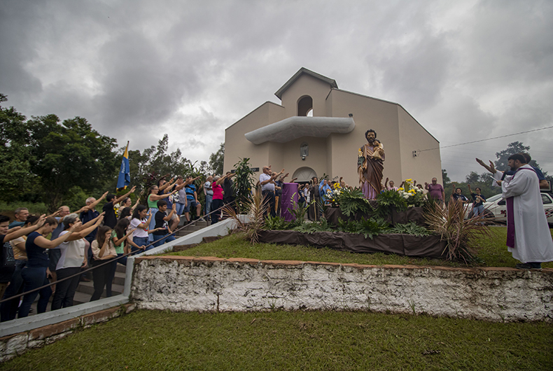 Bênção da imagem do padroeiro, acompanhada por integrantes da comunidade, foi conduzida pelo padre Fabrício Niederle