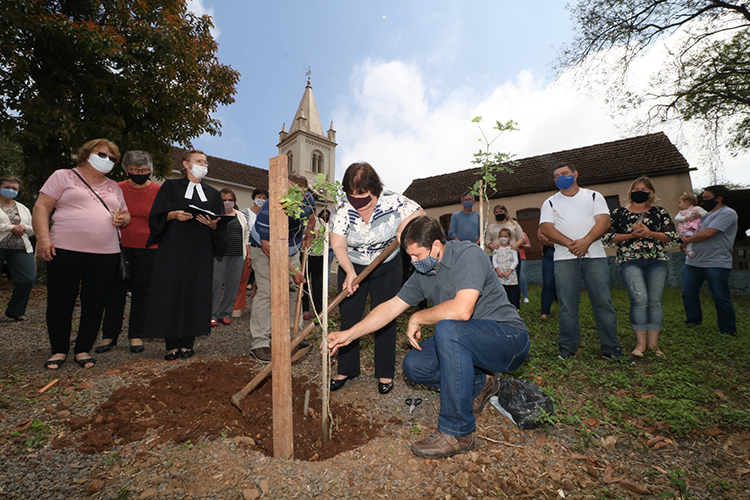 Com o objetivo de celebrar seu legado de 165 anos, a Comunidade Evangélica Luterana de Alto Linha Santa Cruz realizou na manhã desse domingo, 25, um ato em homenagem aos antepassados que ajudaram a colonizar a região. Após um culto realizado na Igreja Evangélica de Confissão Luterana, dois carvalhos alemães foram plantados no terreno anexo ao templo, ao lado de um pé de abacate.