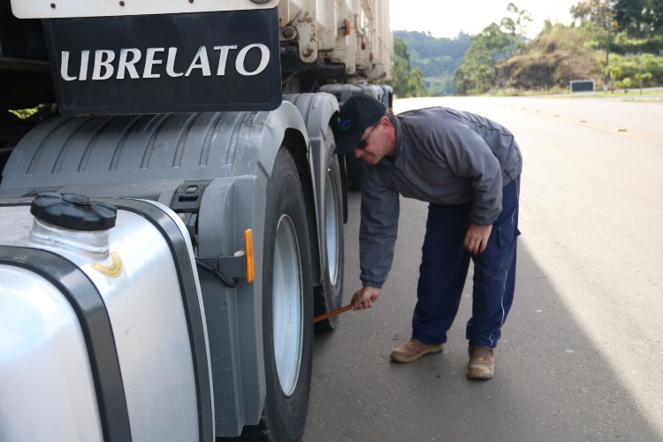 Preocupado, Pilger parou o caminhão para conferir se o rodado ainda estava em ordem | Foto: Rafaelly Machado