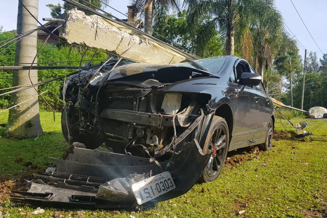 O motorista de um Honda Civic, com placas de Santa Cruz do Sul, perdeu o controle do carro e colidiu em um poste. O acidente ocorreu na madrugada deste sábado, 2, na Avenida Léo Kraether, no Bairro Country, em Santa Cruz do Sul. Com o impacto, o poste caiu sobre o veículo, deixando parte do bairro sem luz e sem telefone.