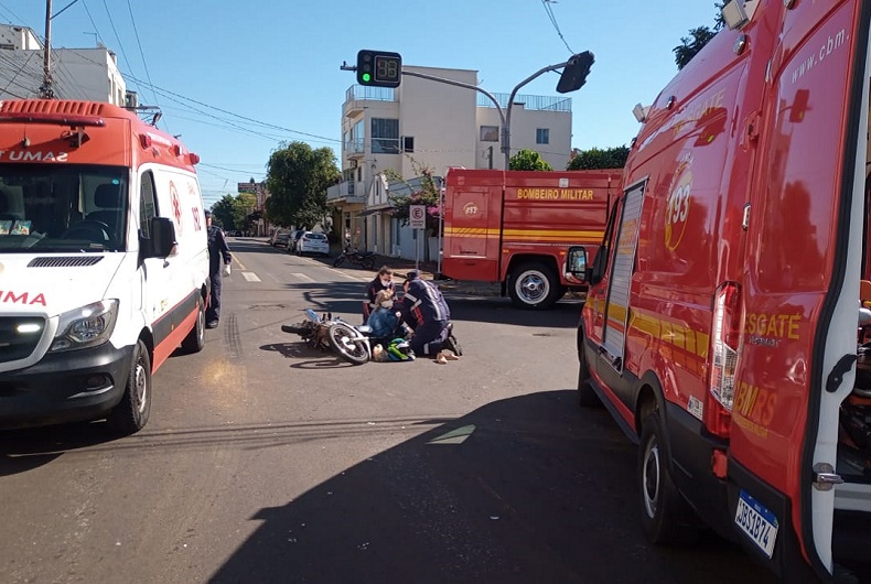 Motociclista foi atendida pelos bombeiros e por equipe do Samu