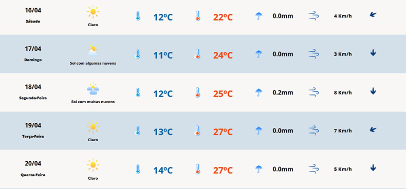 O calor segue aumentando e pode chegar aos 35 graus na quinta-feira. A chuva, que era pouca, vai embora deixando somente algumas nuvens. O dia deve ser ensolarado, assim como na sexta-feira. No último dia útil da semana os termômetros variam entre os 20 e 35 graus.
