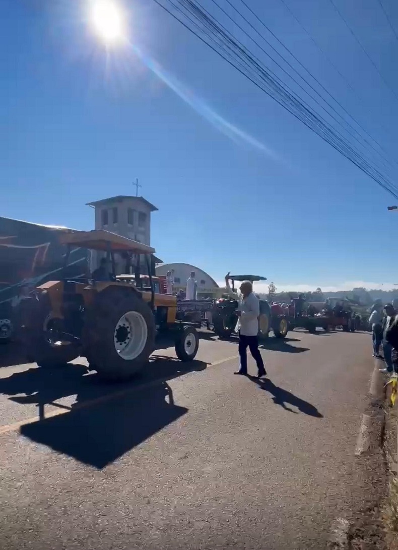 Centenas de veículos entre caminhões, tratores e carros iniciaram o trajeto, aberto por cavalarianos e charretes, no trevo de acesso à localidade. O desfile passou por loteamentos até a comunidade, onde houve a bênção feita pelo padre Zé Renato.