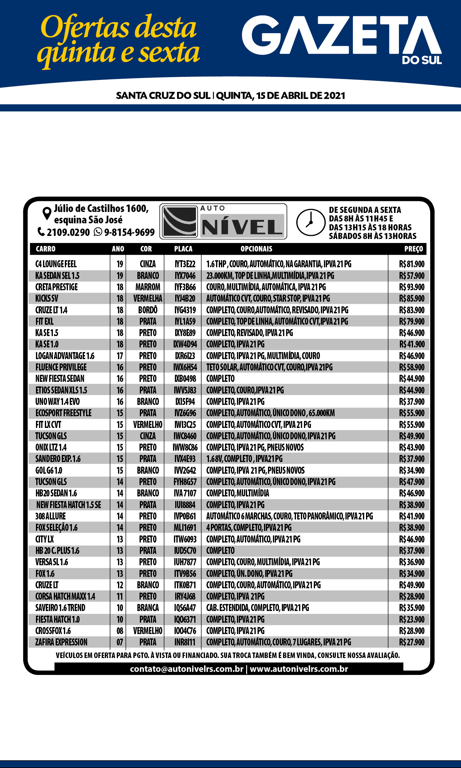Para mais ofertas acesse: www.autonivelrs.com.br