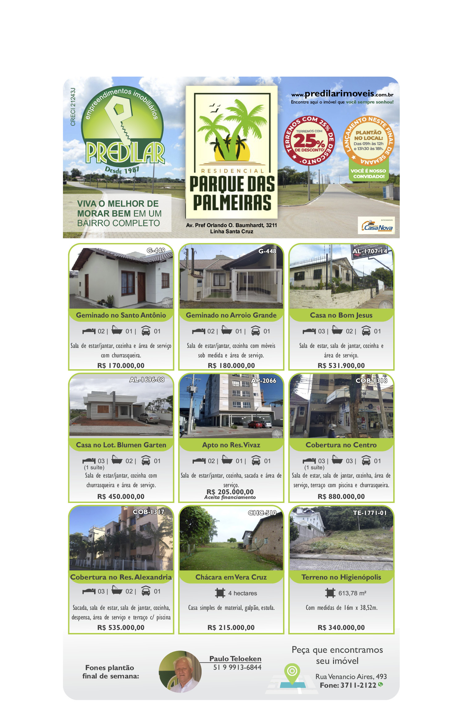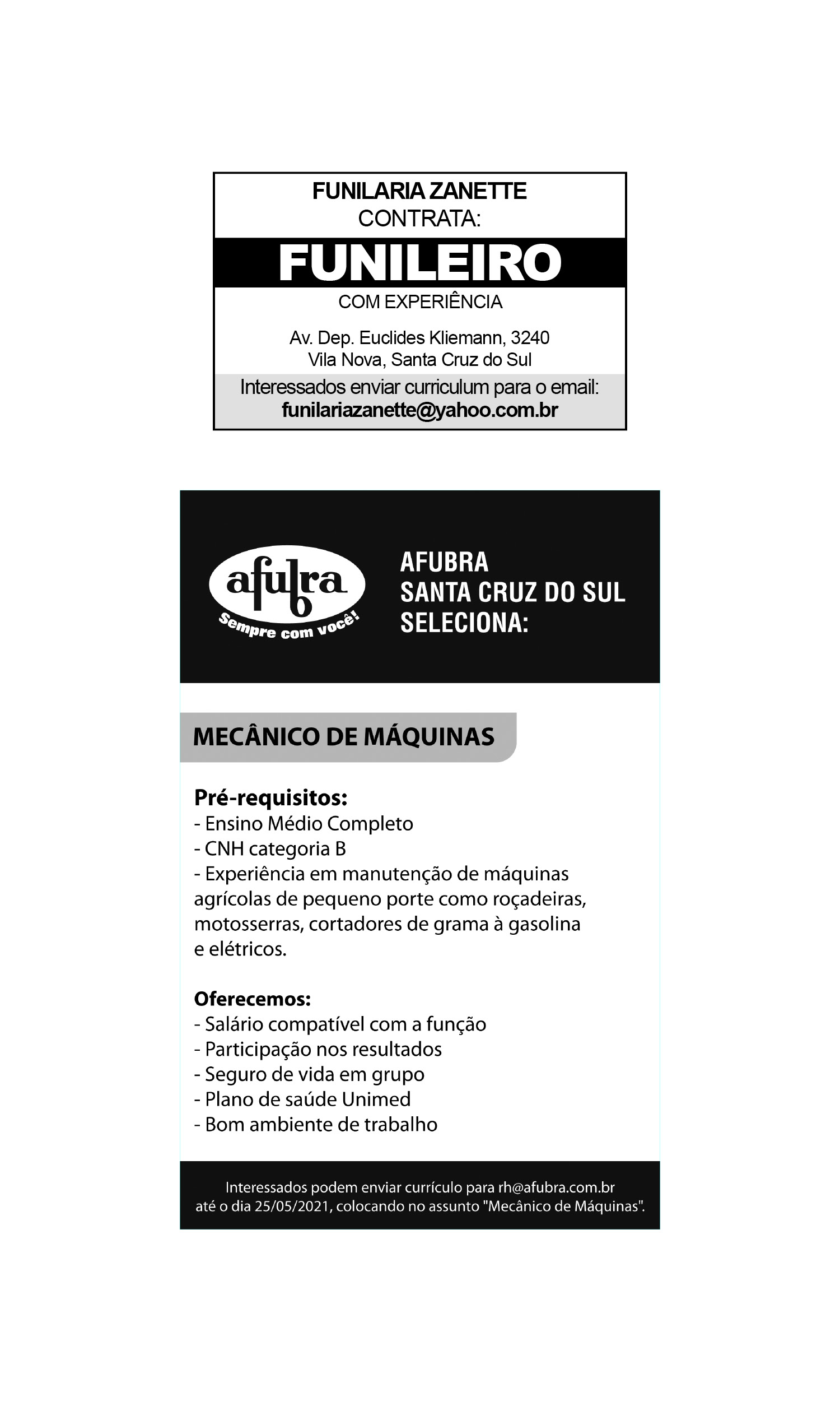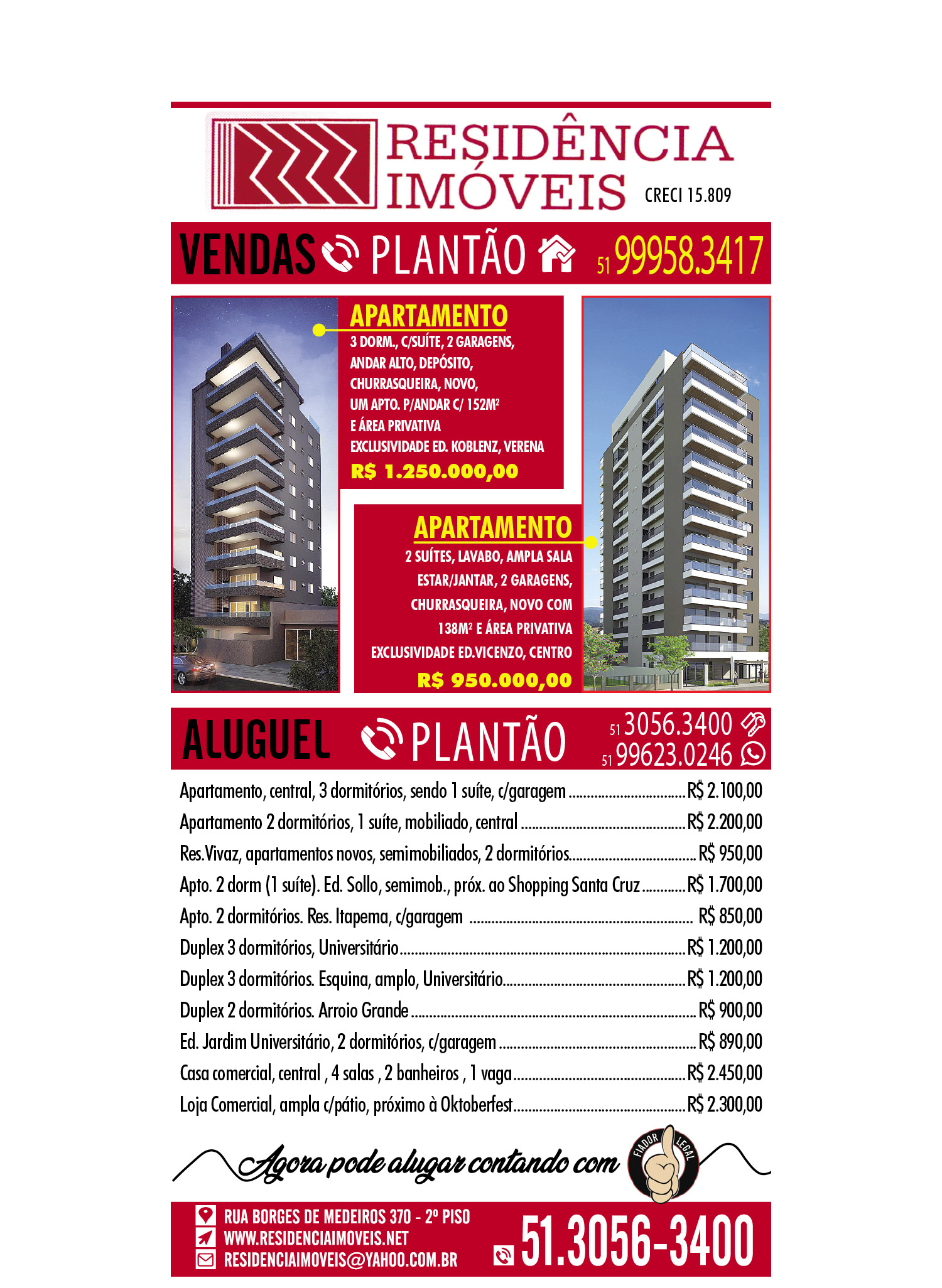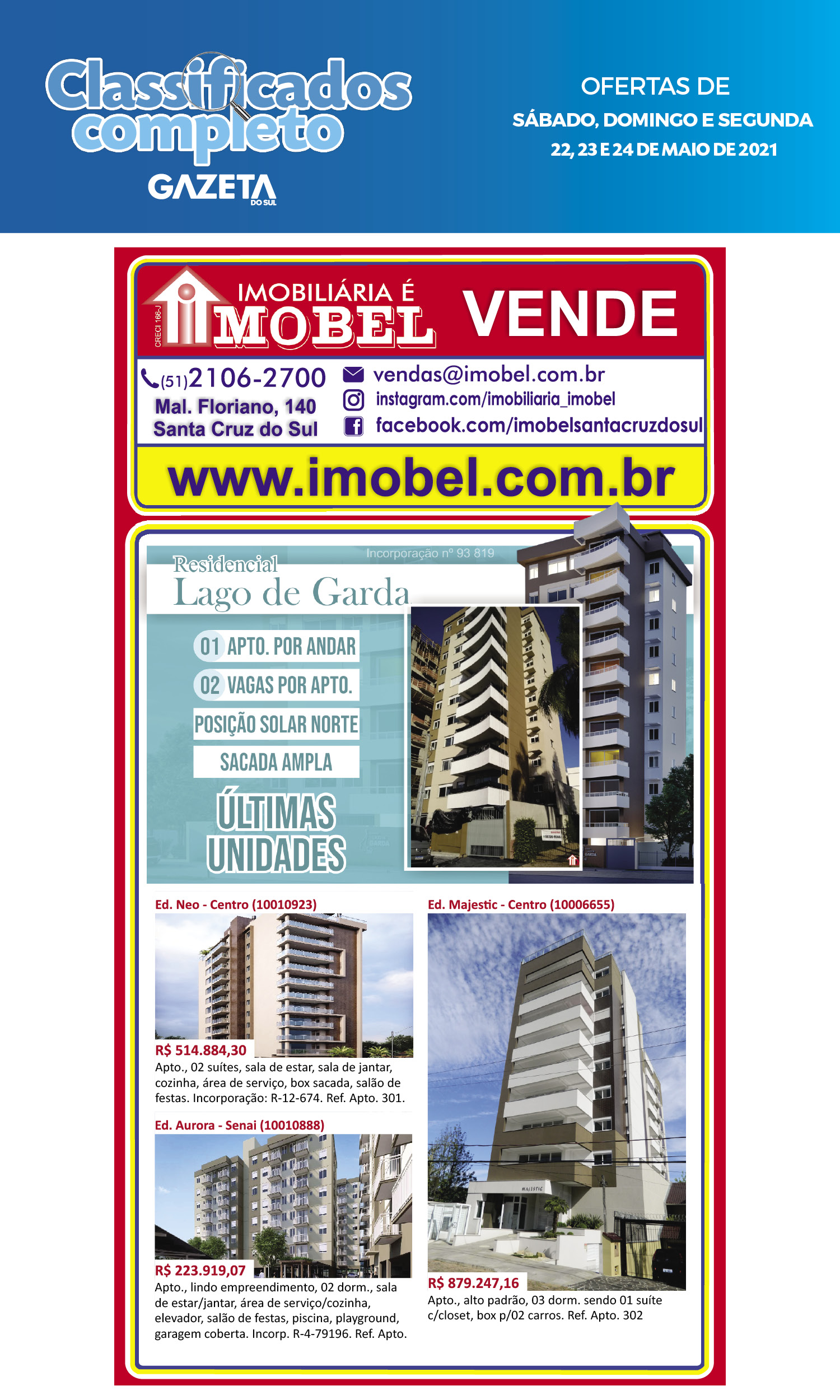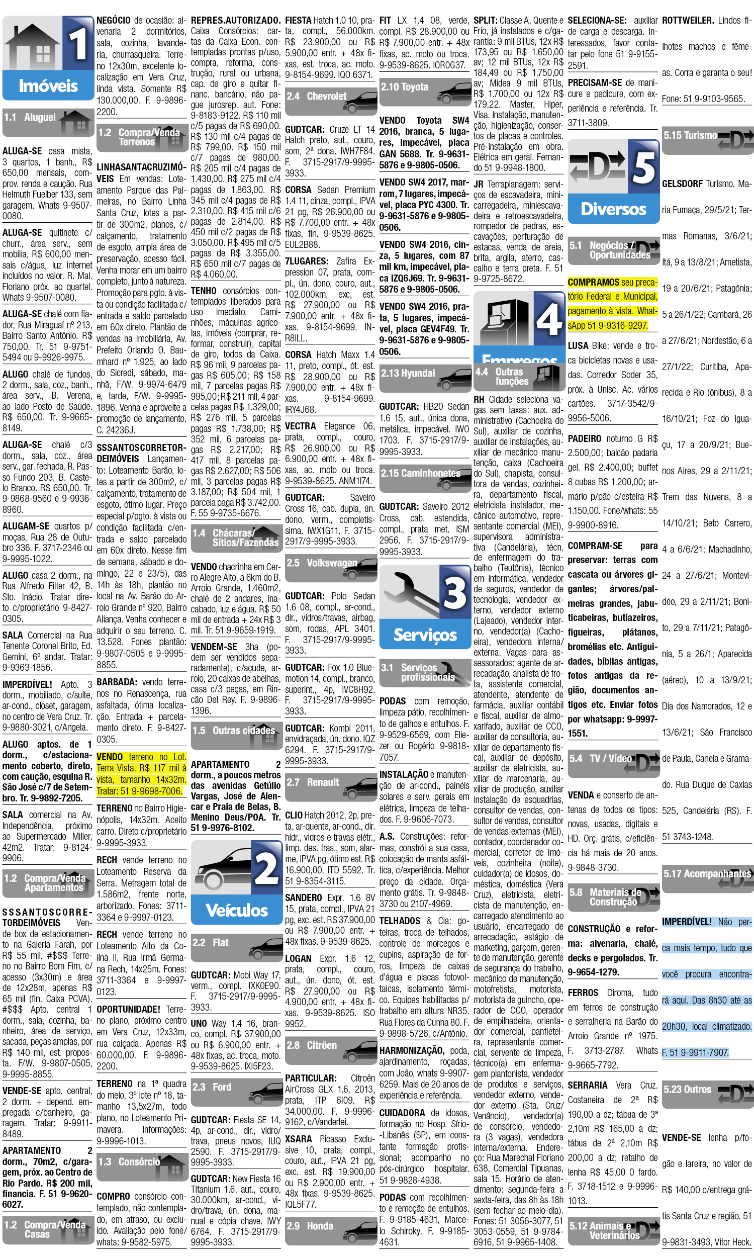 O suplemento de Classificados, que circula nas edições de terças, quintas e sábados, é um dos mais tradicionais da Gazeta do Sul, como vitrine e canal de negócios, de oferta, compra e venda em toda a região central do Rio Grande do Sul. E, para enriquecer pesquisas de produtos e serviços e possibilitar resultado ainda melhor a usuários e parceiros, nos anúncios de clientes cadastrados, o leitor tem acesso direto com link ao site do anunciante, onde poderá verificar mais detalhes sobre os itens. Confira: