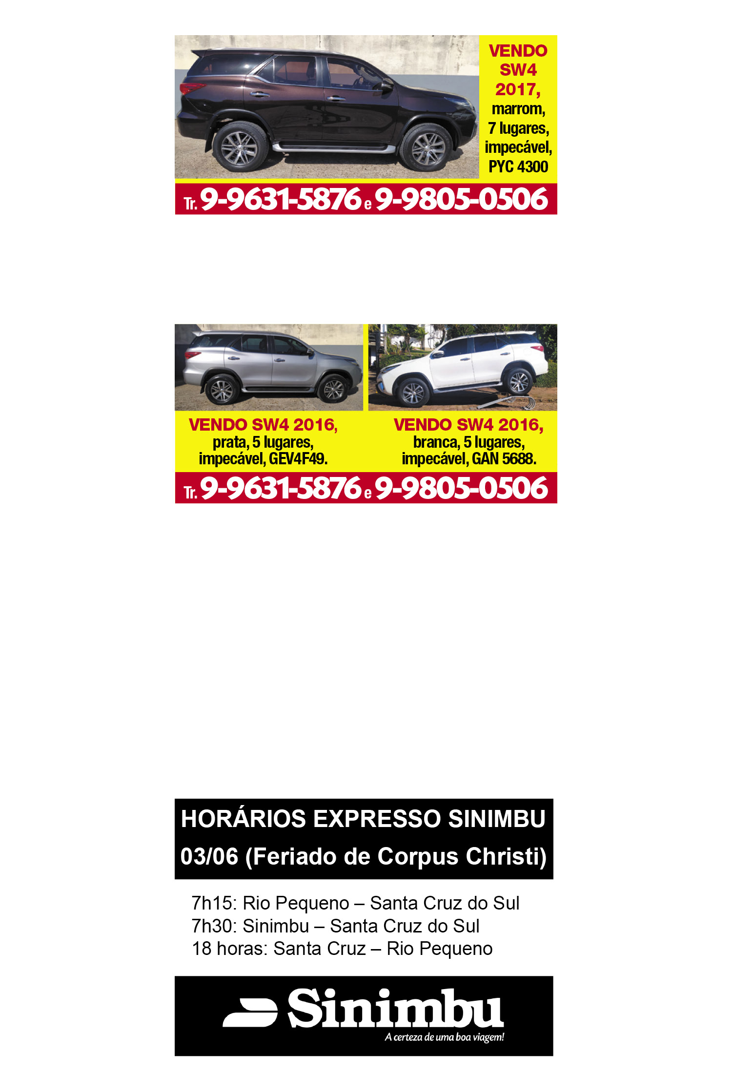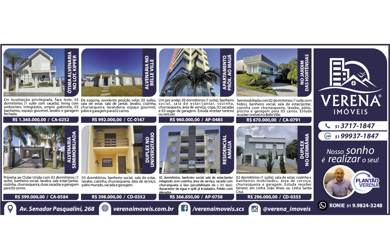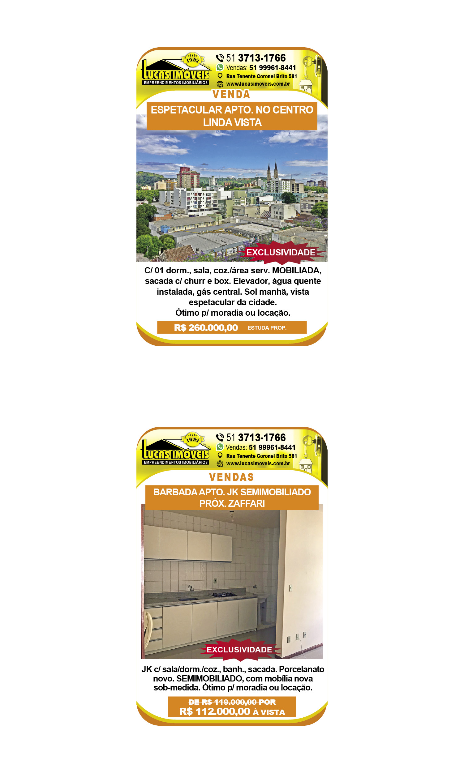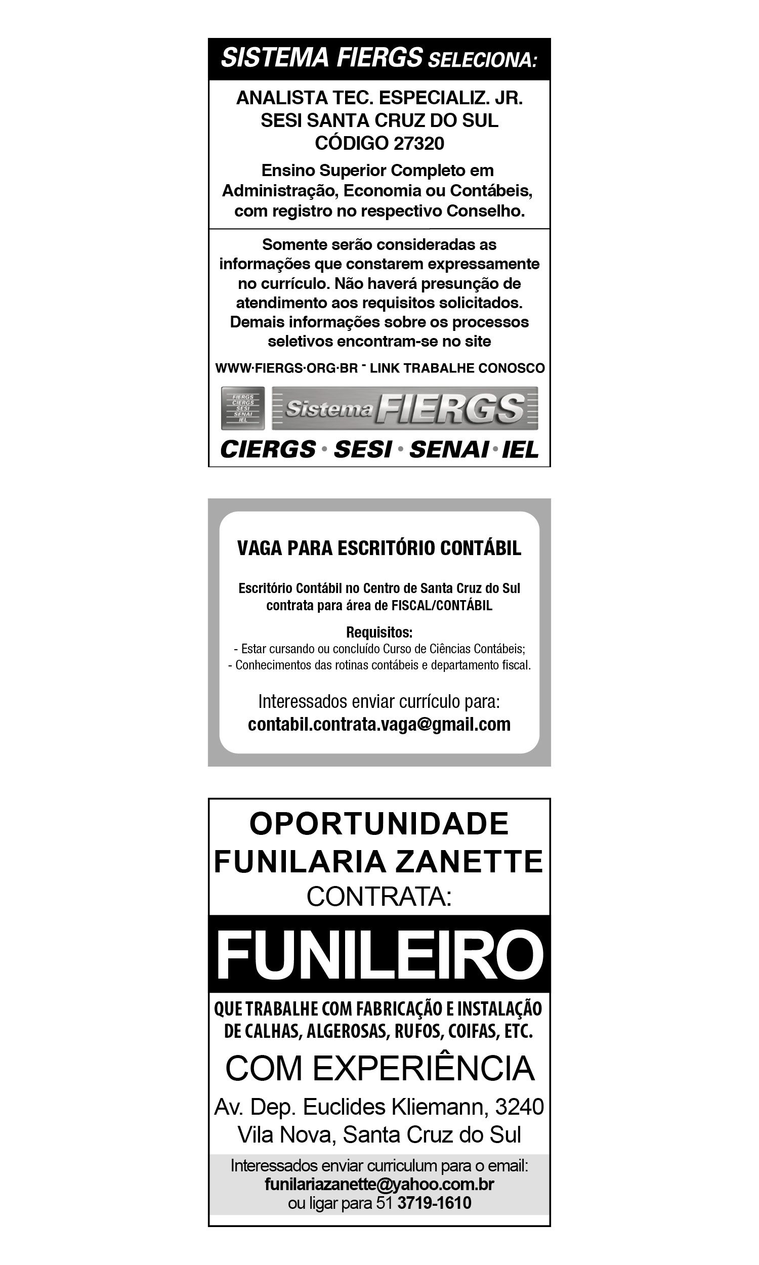 O suplemento de Classificados, que circula nas edições de terças, quintas e sábados, é um dos mais tradicionais da Gazeta do Sul, como vitrine e canal de negócios, de oferta, compra e venda em toda a região central do Rio Grande do Sul. E, para enriquecer pesquisas de produtos e serviços e possibilitar resultado ainda melhor a usuários e parceiros, nos anúncios de clientes cadastrados, o leitor tem acesso direto com link ao site do anunciante, onde poderá verificar mais detalhes sobre os itens. Confira: