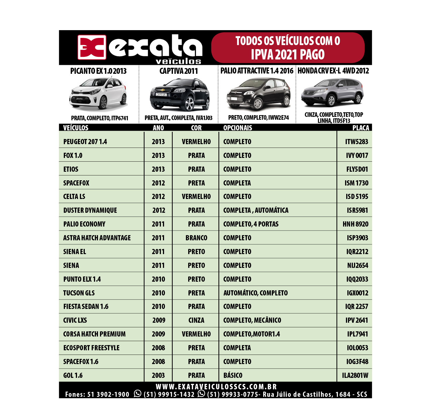 Para mais ofertas acesse: www.exataveiculosscs.com.br