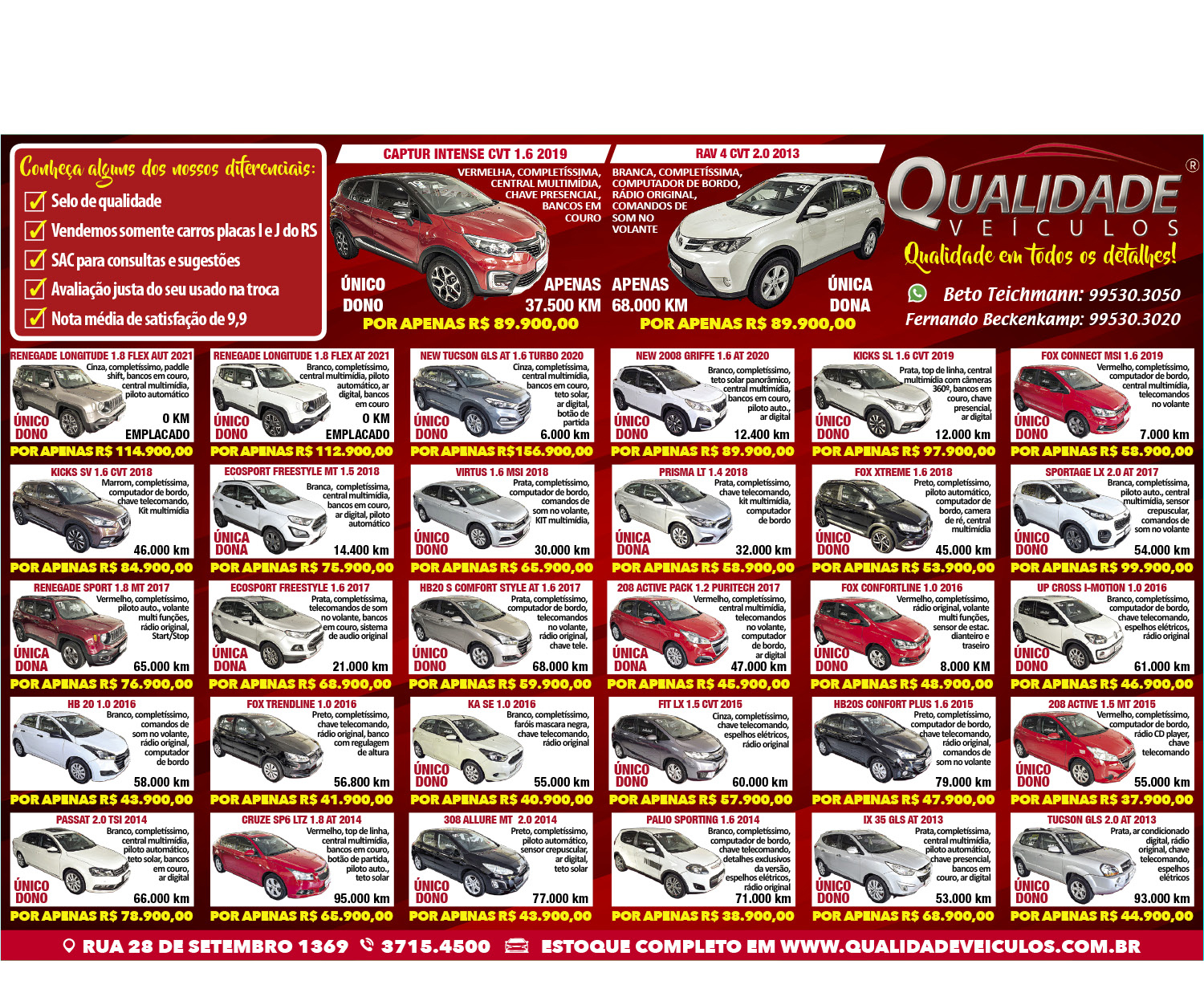 O suplemento de Classificados, que circula nas edições de terças, quintas e sábados, é um dos mais tradicionais da Gazeta do Sul, como vitrine e canal de negócios, de oferta, compra e venda em toda a região central do Rio Grande do Sul. E, para enriquecer pesquisas de produtos e serviços e possibilitar resultado ainda melhor a usuários e parceiros, nos anúncios de clientes cadastrados, o leitor tem acesso direto com link ao site do anunciante, onde poderá verificar mais detalhes sobre os itens. Confira: