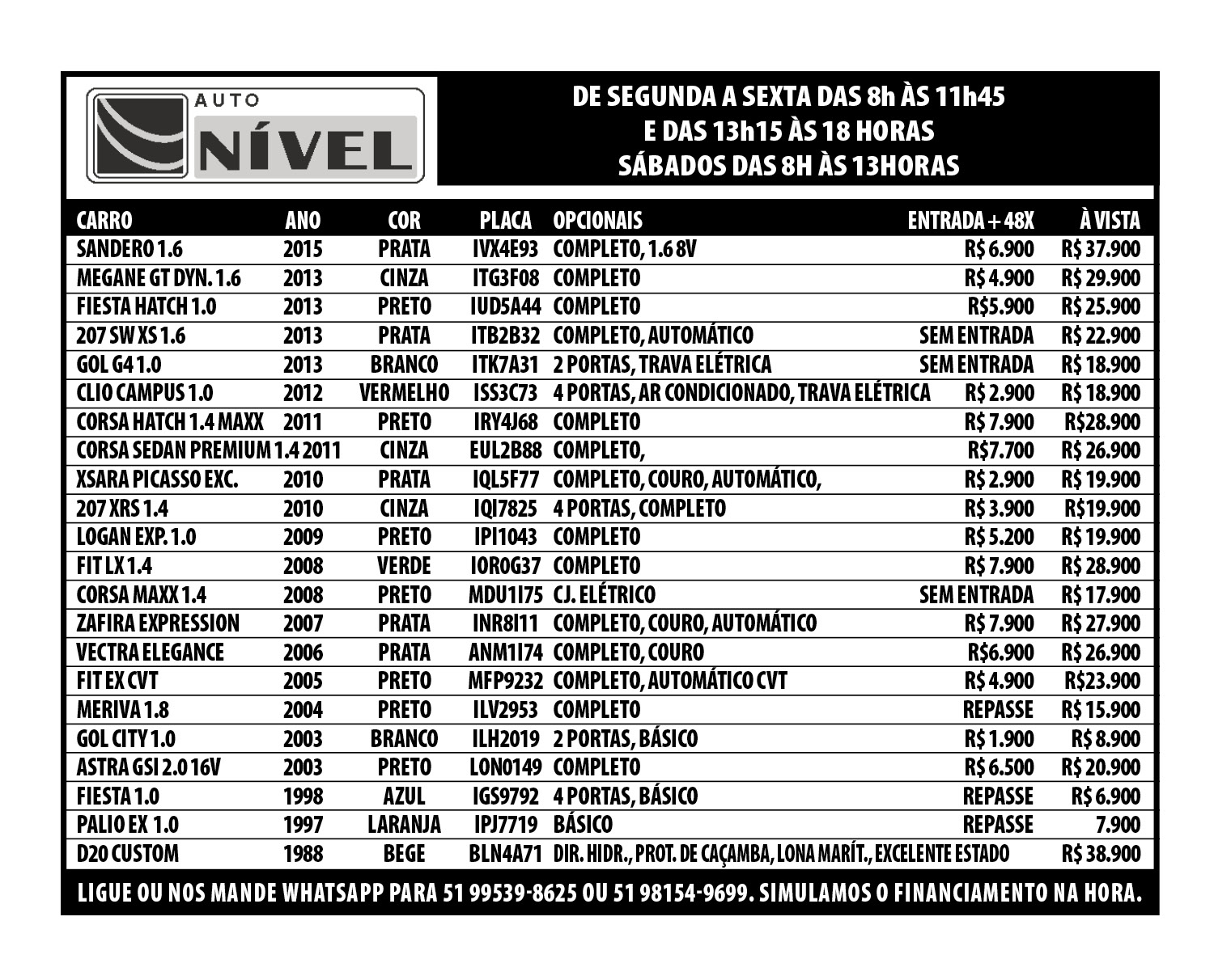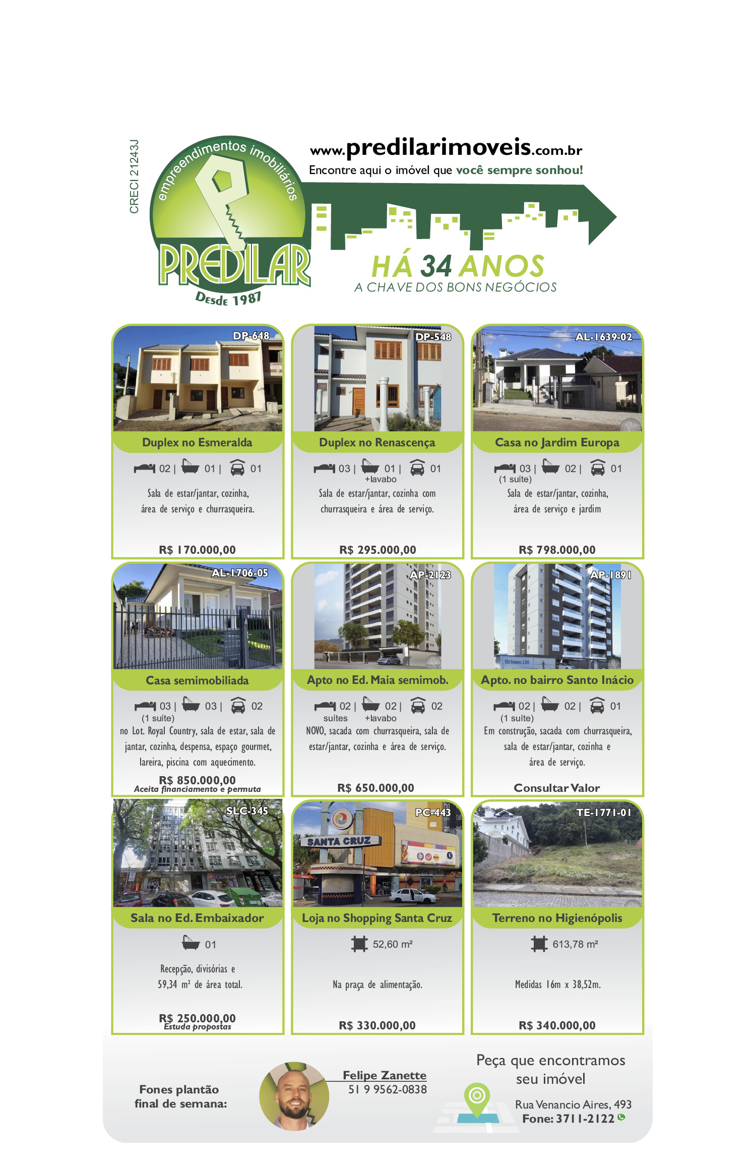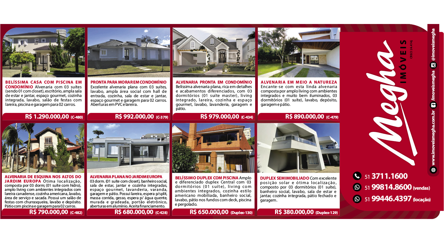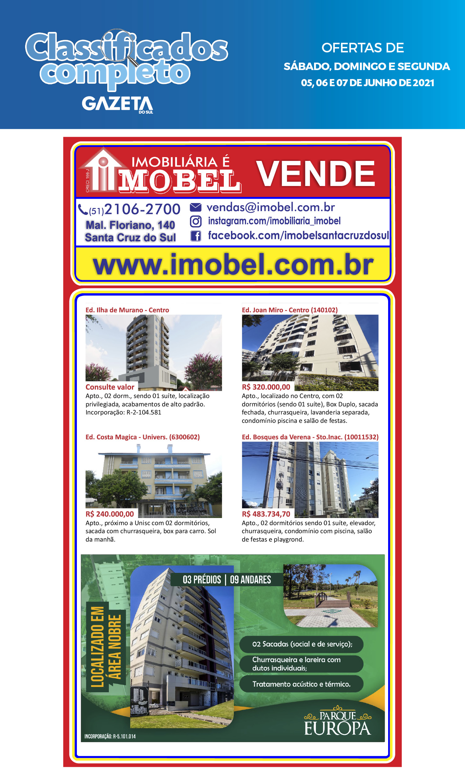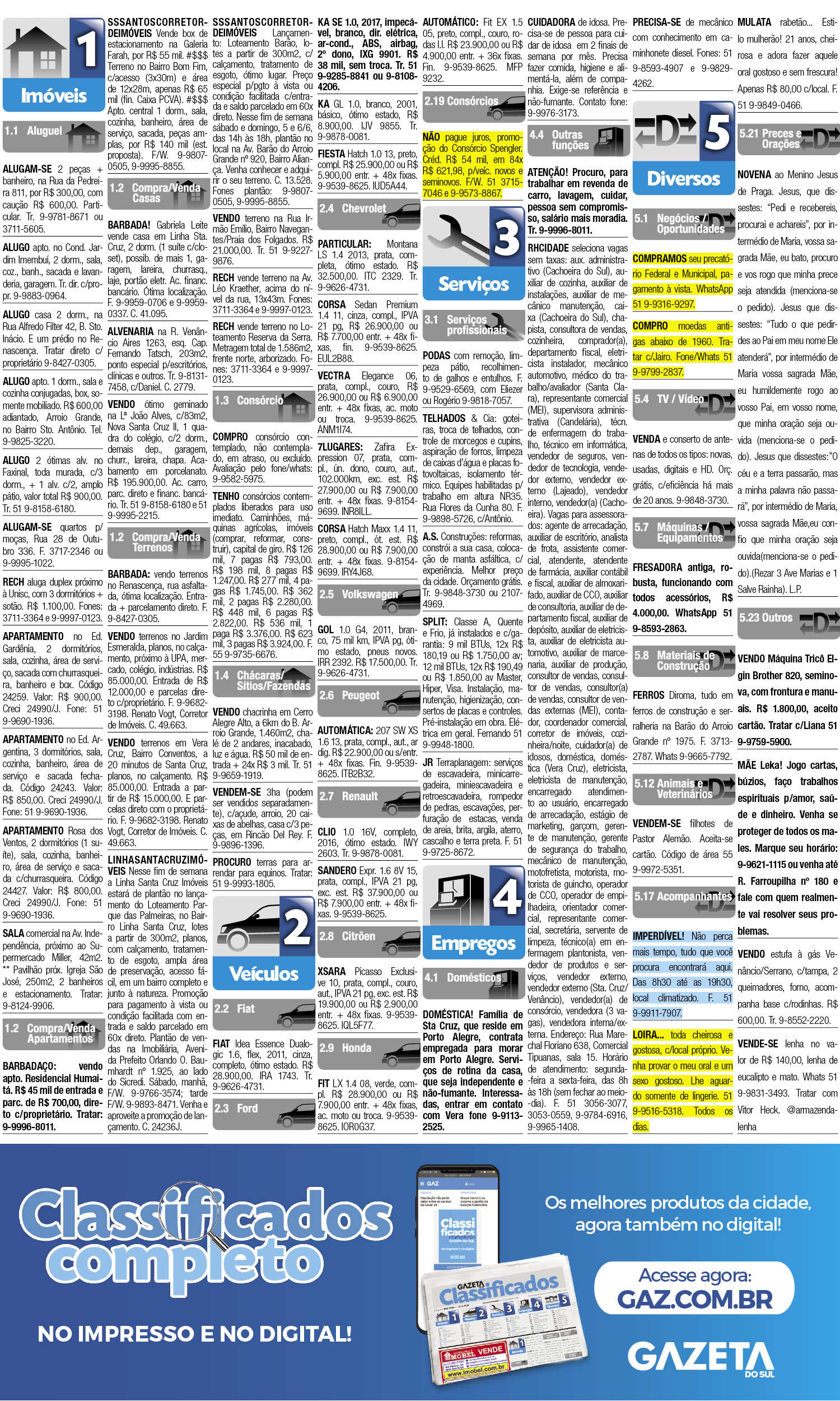 O suplemento de Classificados, que circula nas edições de terças, quintas e sábados, é um dos mais tradicionais da Gazeta do Sul, como vitrine e canal de negócios, de oferta, compra e venda em toda a região central do Rio Grande do Sul. E, para enriquecer pesquisas de produtos e serviços e possibilitar resultado ainda melhor a usuários e parceiros, nos anúncios de clientes cadastrados, o leitor tem acesso direto com link ao site do anunciante, onde poderá verificar mais detalhes sobre os itens. Confira: